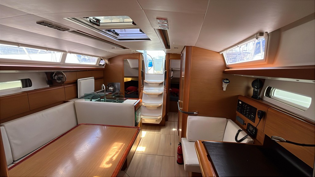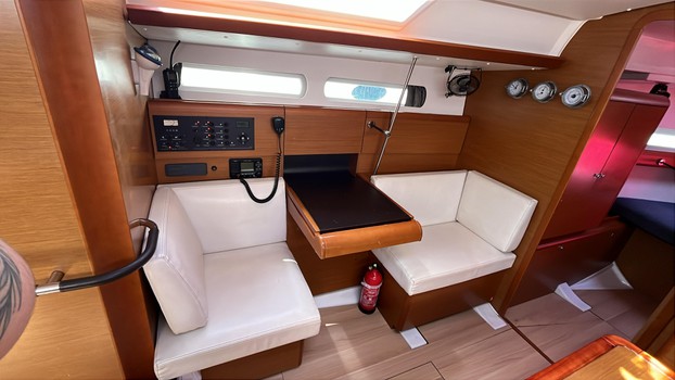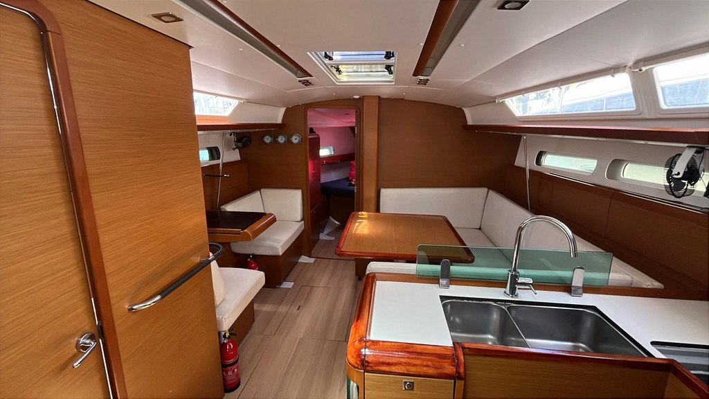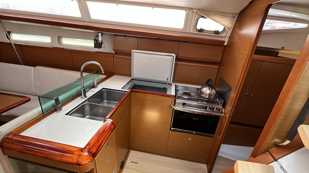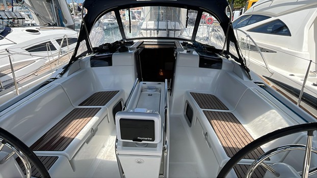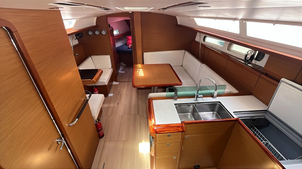 Bimini, Cockpit speakers, Cockpit table, Dinghy, Electric windlass, Genoa, Battened mainsail, Outside shower, Sprayhood, Swim ladder, Gangplank, Diving mask.