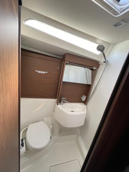 Bimini, Hélice de proa, Altavoces de bañera, Mesa de cabina, Embarcación auxiliar, Mayor con sables, Ducha exterior, Génova enrollable, Capota antirociones, Cubierta de madera de teka, Escalera de baño, Bomba de achique eléctrica.