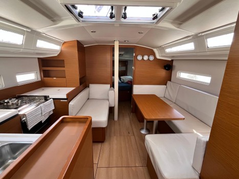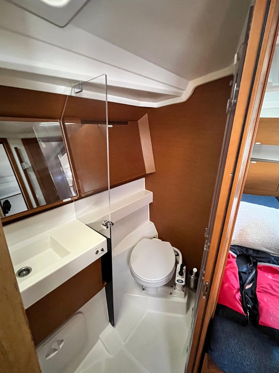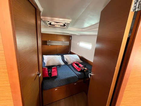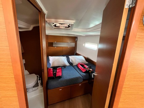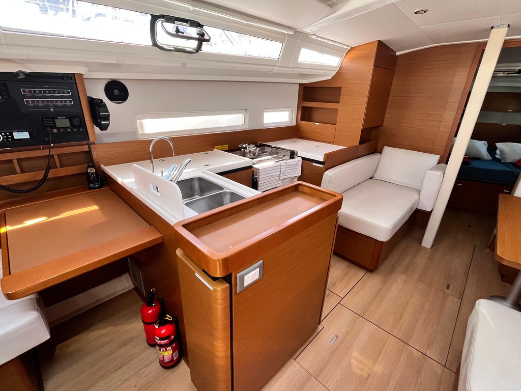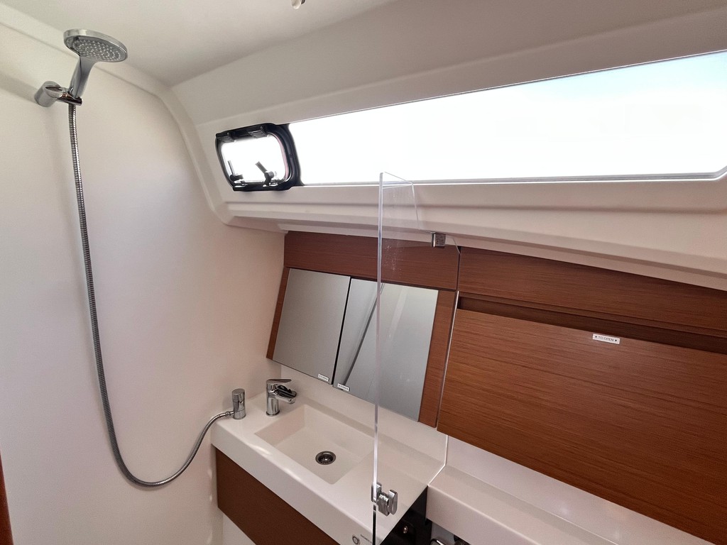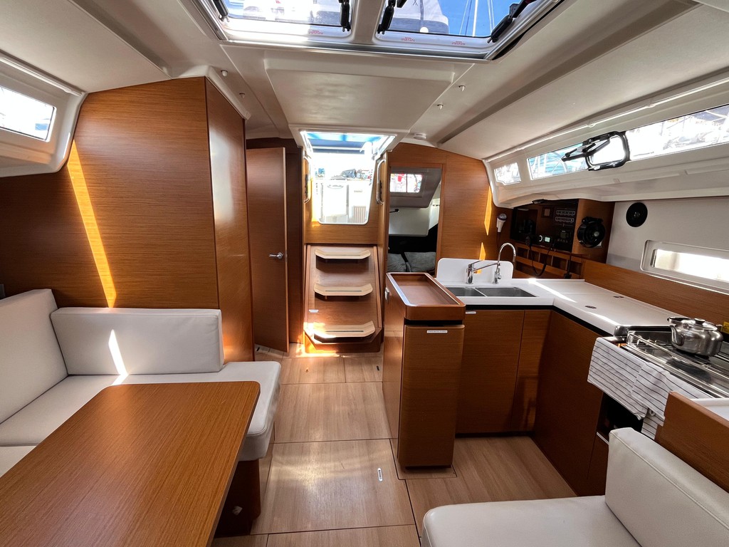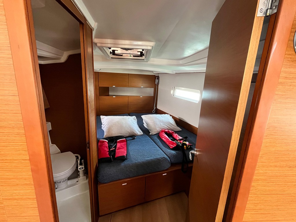 Bimini, Hélice de proa, Altavoces de bañera, Mesa de cabina, Embarcación auxiliar, Molinete eléctrico de ancla, Mayor con sables, Ducha exterior, Génova enrollable, Capota antirociones, Escalera de baño, Pasarela, Máscara buceo.