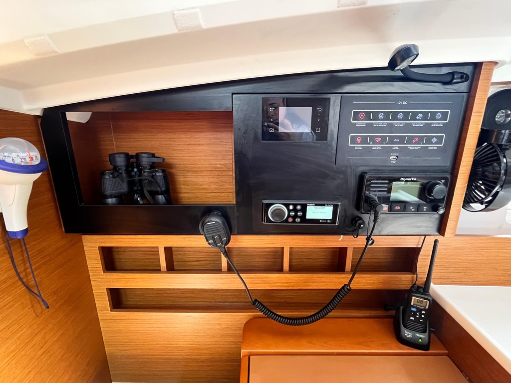 Piloto automático, Prismáticos, Gps, Plotter, Radio vhf, Velocímetro, Kit de reparación vela, Herramientas, Kit de primeros auxilios, Balsa salvavidas hinchable, Luces de navegación.
